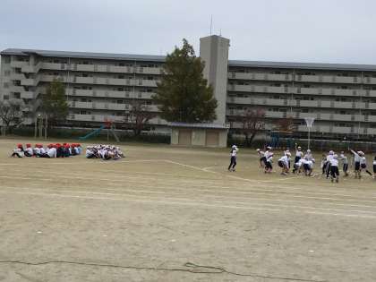 11/13 1・2年合同体育2 公開日 2025/11/13 更新日 2025/11/13 各学年から 1限の練習風景です。本番は赤、白、どちらが勝つのか楽しみですね。1限後半はかけっこの練習も行っていました。