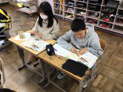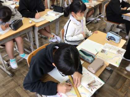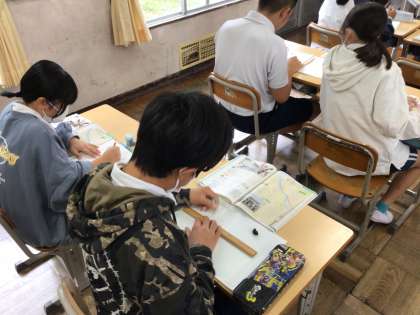 11/13 6年算数1 公開日 2025/11/13 更新日 2025/11/13 各学年から 6年算数では、図形の拡大と縮小の単元を学んでいます。「縮図を利用して、実際の直線距離を求めよう」というめあてで学習を進めていました。縮図の利用は、中学校地理の地図の場面や、中学校数学の相似な図形のところでも活用していくので、しっかり仕組みを理解していきましょう。
