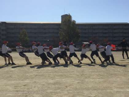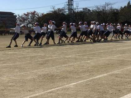 5、6年生は綱引きをしました。赤白とても力一杯綱を引き、とてもいい勝負を繰り広げました。
