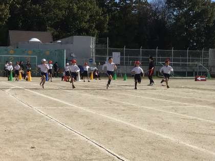 2年生「かけっこ」です。みんなゴールを目指して全力で走ります。