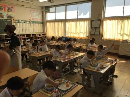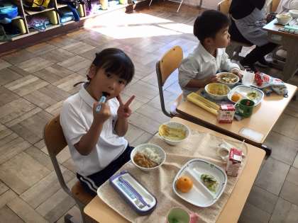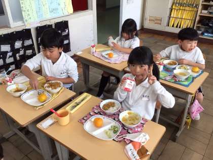 11/14 楽しい給食 公開日 2025/11/14 更新日 2025/11/14 特別活動 今日の給食はカレーライス、牛乳、チキンサラダ、みかんです。 一生懸命頑張った後のカレーは最高においしいね。 にこにこ笑顔で食べていました。