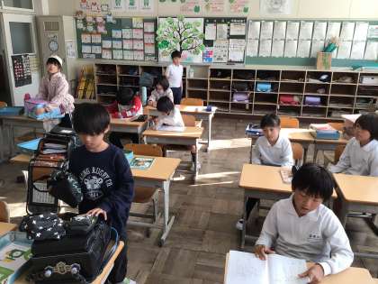 11/17 朝のひととき 公開日 2025/11/17 更新日 2025/11/17 各学年から 週明け晴天のもと、通学団で登校してきました。今日は4時間授業で給食を食べて13時25分に一斉下校になります。時間を見ながら朝の支度を進めていました。