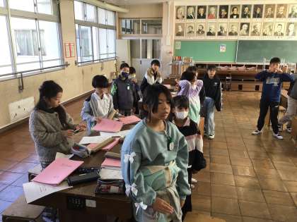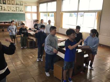 11/17 4年音楽1 公開日 2025/11/17 更新日 2025/11/17 各学年から 4年音楽では、「旋律の特徴を生かしてうたおう!」というめあてで学習を進めていました。「とどけよう このゆめを」と「ゆかいに歩けば」を明るい声でリズムにのって歌いました。リコーダーは、「オーラ リー」をグループで練習をしました。