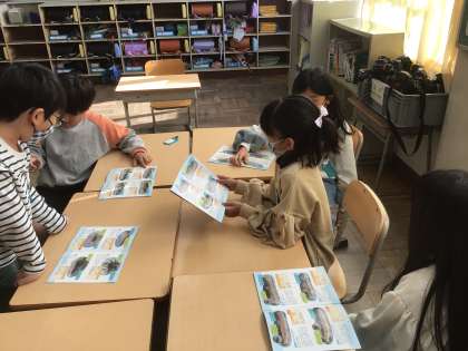 11/18 2年生国語1 公開日 2025/11/18 更新日 2025/11/18 各学年から 2年生国語では「見つけたことを話そう」の学習をしています。今日は、伝えたいことを決めて、メモをとりました。グループで考えています。