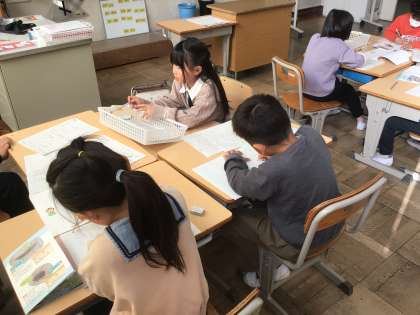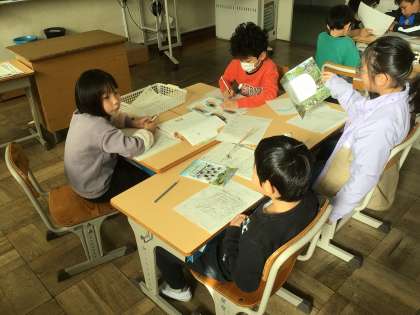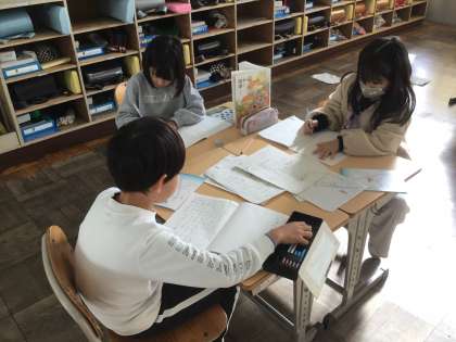 2年生国語「見つけたことを話そう」では、組み立てメモを完成し、原稿を書きました。グループで考えながらまとめました。