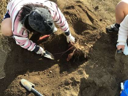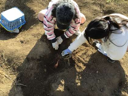 11/18 8組生単 公開日 2025/11/18 更新日 2025/11/18 各学年から 1限は運動場西側の畑でサツマイモ掘りをしました。今年度最後の収穫になります。予想以上の大きさのサツマイモがたくさん収獲できました。