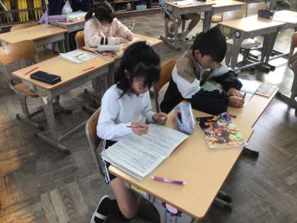 4年生国語では「聞いてほしいなこんな出来事」の学習をしています。今日は、気持ちが伝わる話し方の工夫を考えました。一人一人、ノートに文章を書きました。