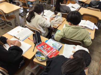 11/18 5年国語1 公開日 2025/11/18 更新日 2025/11/18 各学年から 5年国語では、和の文化を受けつぐという文章を読み進めています。「本文とインタビュー記事を読み比べて分かることを考えよう」というめあてで学習を進めていました。