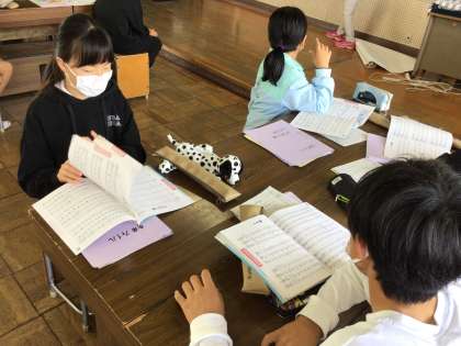6年音楽では、「翼をください」を合唱しました。「次の合唱曲を決めよう」というめあてで学習を進めていました。実際に楽譜を見ながら曲を真剣に聴いていました。
