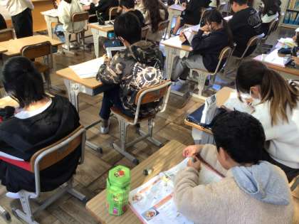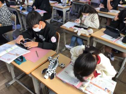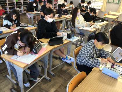 11/20 6年家庭科 公開日 2025/11/20 更新日 2025/11/20 各学年から 6年家庭科では、まかせてね 今日の食事のところを学んでいました。教科書や学習用タブレットを使って調べ、献立の調理計画を立ててワークシートに記入をしていました。