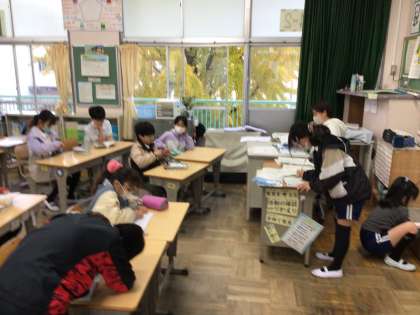 11/25 朝のひととき2 公開日 2025/11/25 更新日 2025/11/25 各学年から 4連休明けですが、時間をみててきぱきと朝の支度を進めていました。友達との会話もはずみ、笑顔がたくさんみられました。