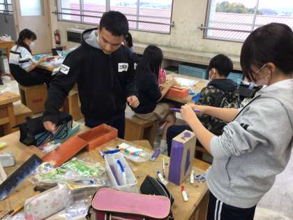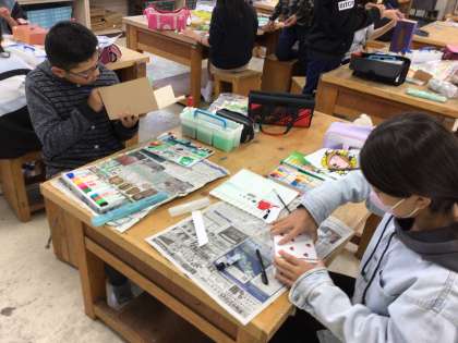 11/25 6年図工 公開日 2025/11/25 更新日 2025/11/25 各学年から 6年図工では、1枚の板からの作品づくりを進めていました。色や形、つくり方を工夫して生活に役立つ入れ物をつくろうというものです。作品完成に向けて仕上げを行っていました。