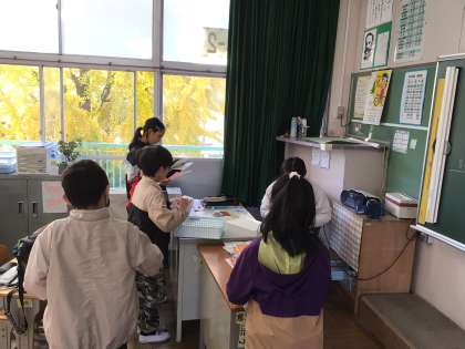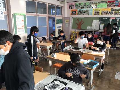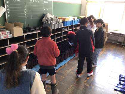 時間をみて朝の支度を進めていました。4年生は朝から岩本川に出発をするので、準備をしていました。