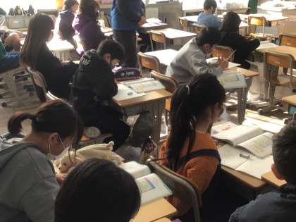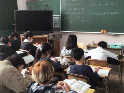 5年生算数では、少人数に分かれて授業を行いました。「平均とその利用」の問題練習をしました。様々な問題をノートに解きました。