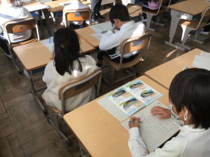 11/26 2年生国語 公開日 2025/11/26 更新日 2025/11/26 各学年から 2年生国語では、岩本川について調べたことを1年生に発表するために、スピーチ原稿を考え、プリントに書きました。どんなことを発表するか楽しみですね。