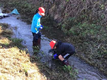岩本川での活動の様子です。協力して石を動かしたり、土砂をかき出していました。