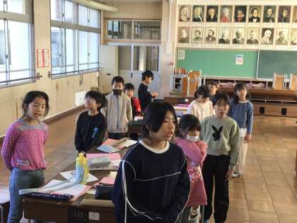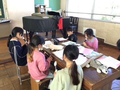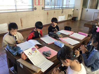 11/26 4年音楽1 公開日 2025/11/26 更新日 2025/11/26 各学年から 4年音楽では、既習曲を歌ったり、リズム練習「楽しいマーチ」でクラッピングをしたりしました。「オーラ リー」や「月夜」をリコーダーで練習しました。