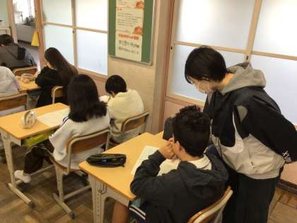 11/27 6年算数1 公開日 2025/11/27 更新日 2025/11/27 各学年から 6年算数では、図形の拡大と縮小の単元を学んでいます。「図形同士の縦と横の長さを比べよう」というめあてで学習を進めていました。まず個人で調べたことをワークシートに書き込み、それをもとにグループで話し合っていました。