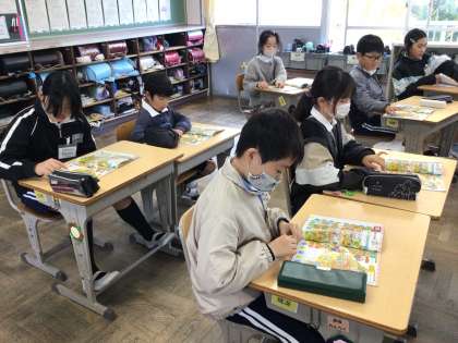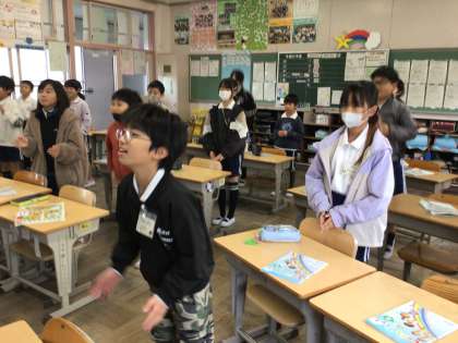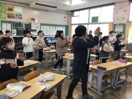 11/27 4年生外国語活動 公開日 2025/11/27 更新日 2025/11/27 各学年から ALTの先生と英語の学習をしました。今日はアルファベットの小文字の勉強です。アルファベットの歌を歌ったり、歌に合わせてアルファベットを指したりしながらアルファベットの小文字を覚えました。