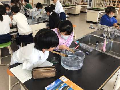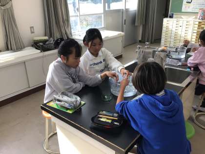 11/27 4年生理科 公開日 2025/11/27 更新日 2025/11/27 各学年から 「ものの温度と体積」の学習です。今日は空気を温めたり冷やしたりすると体積はどうなるのかを実験しました。試験管に閉じこめた空気を冷やすとどう変化するかじっと観察しています。