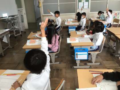 2年生算数では「かけ算」の学習をしています。今日は「8の段」の九九を学習しました。答えが大きくなってくると、計算が難しいですね。頑張って覚えていきましょう。