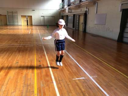 11/28 7・8組体育 公開日 2025/11/28 更新日 2025/11/28 各学年から 7・8組体育では、準備体操を行ってから、5分間走、ケンケンパ、なわとびをやりました。大縄大会に備えて、大縄練習も行いました。また、ボールを使った運動にも取り組みました。