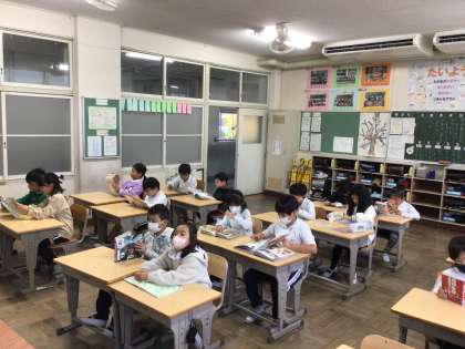 時間を意識して朝の支度を済ませて、チャイムがなると静かに読書が始まりました。今日も落ち着いた雰囲気で一日がスタートできました。