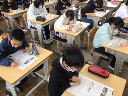 12/3 5年理科 公開日 2025/12/03 更新日 2025/12/03 各学年から 5年理科では、「流れる水のはたらきと土地の変化」「流れる水のはたらき」の単元テストを実施していました。問題をよく読んで、集中して取り組んでいました。