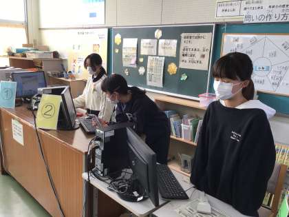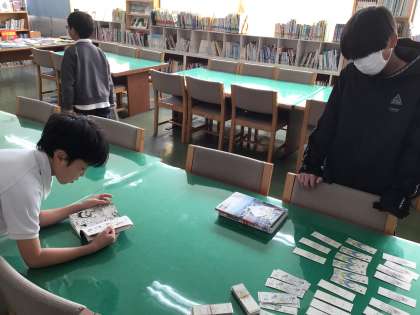 今週は図書委員会企画の読書週間です。太陽の時間やふれあいの時間に図書室に行き、本に親しんでいます。