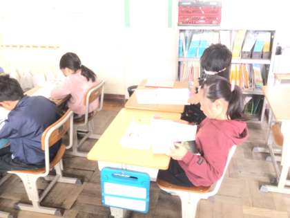 12/4 3年生国語 公開日 2025/12/04 更新日 2025/12/04 各学年から 3年生国語では「モチモチの木」の学習をしています。今日は、物語を音読し、内容をとらえました。登場人物の気持ちや人物像を考えながら読み取っていきます。