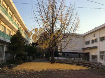 黄色一色になっていた中庭のイチョウ。週が明けるとすっかり葉っぱが落ちて、中庭は黄色のじゅうたんになっていました。やまびこの森の木も落葉し、葉っぱが残っているのは運動場西側のメタセコイアくらいになりました。一気に秋から冬へ校内の風景が変わっていきますね。