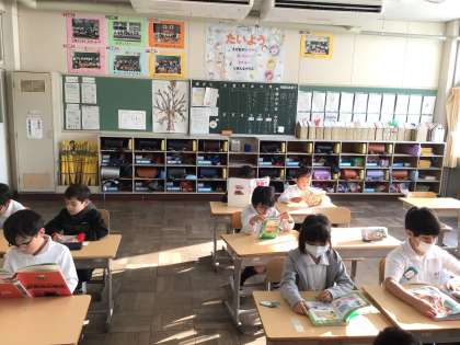チャイムで気持ちを切り替えて、静かに読書が始まりました。今週も落ち着いた雰囲気でスタートできました。