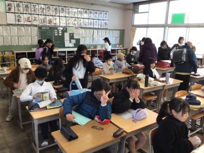あたたかい教室では、友達との会話を楽しみながらも、急いで朝の支度をしていました。子どもたちの元気な声でいっぱいですね。