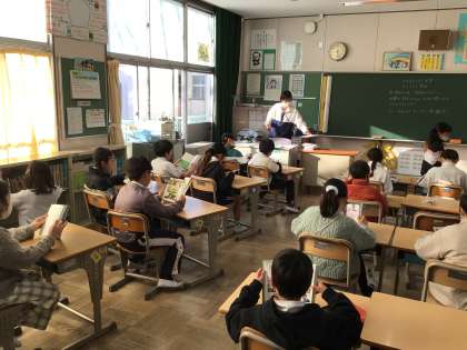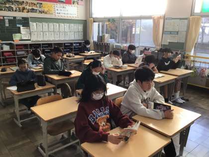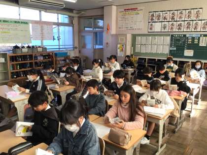8時25分のチャイムがなると静かに読書が始まりました。いい姿勢で本を読むことができています。今日も3時間授業ですが、がんばりましょう。