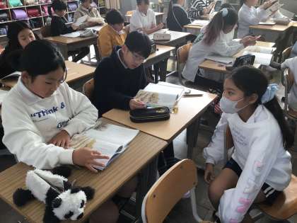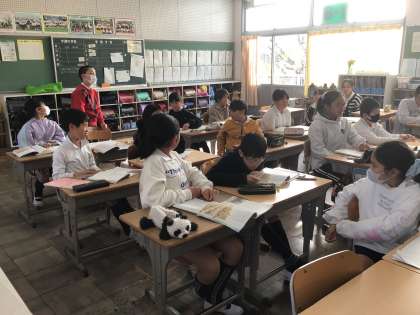 12/9 4年生国語 公開日 2025/12/09 更新日 2025/12/09 各学年から 「ごんぎつね」の学習です。今日は、兵十がうなぎをとっている川の様子を読み取りました。文章に使われている言葉をもとに話し合いました。