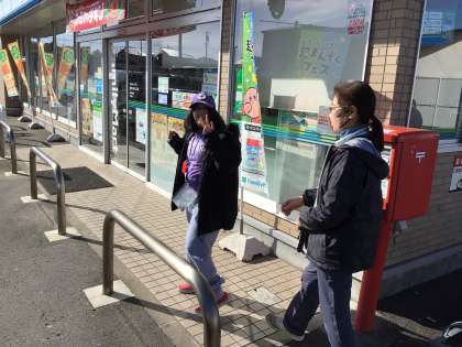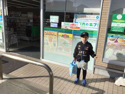 ファミリーマートに到着し、順番に店に入り買い物をしていきました。