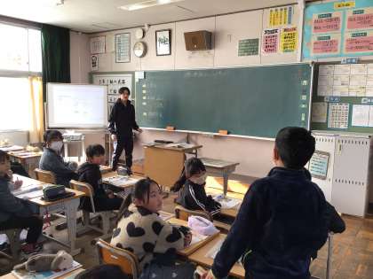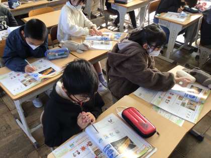 12/11 5年外国語 公開日 2025/12/11 更新日 2025/12/11 各学年から 5年外国語では、ALTの先生と一緒に学習を進めていました。「世界の標識などについて考えよう」というめあてで、映像を見ながら英語の質問の答えを考えていました。