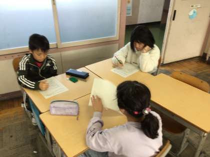 12/11 えがおタイム1 公開日 2025/12/11 更新日 2025/12/11 各学年から 毎週木曜日のスキルタイムは「えがおタイム」です。今週と来週は「いいとこみつけ」です。友達のよいところをプリントに記入をしていきます。プリントに記入するときは静かに進めていました。