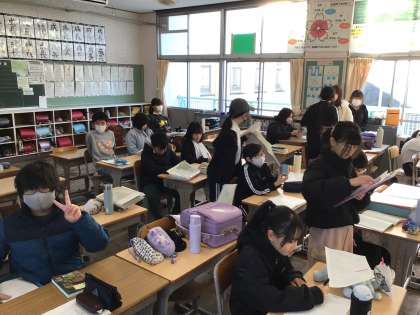 あたたかい教室に入ると、宿題を出したり、授業の準備をしたりするなど、朝の支度を進めていました。