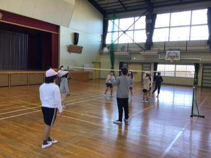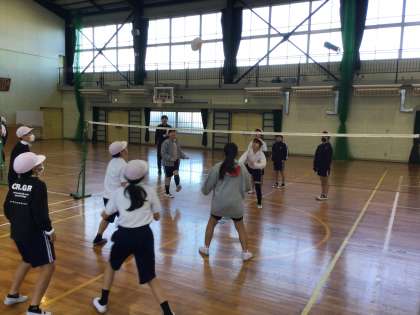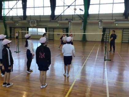 5年体育では、ボール運動を行っています。ソフトバレーボールを行っていて、「ゲームを行い、チームの課題を見つけよう」というめあてで学習を進めていました。