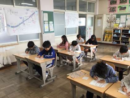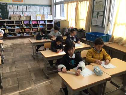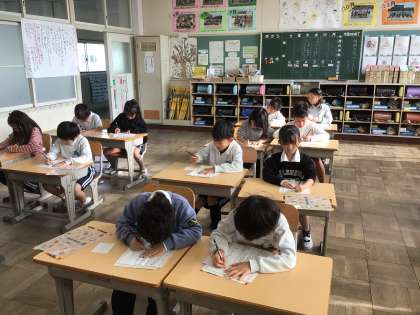 12/17 2年生書写 公開日 2025/12/17 更新日 2025/12/17 各学年から 2年生書写では、「書き初め」の練習をしています。本番と同じ用紙で練習しました。手本をよく見て、上手に書くことができました。冬休みも練習して、1月の書き初め大会で、入賞できるように頑張っていきましょう。