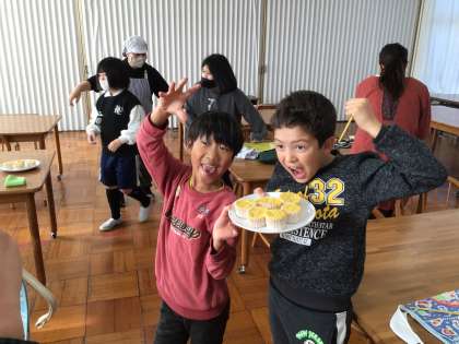 今日のカップケーキづくりの様子です。最後の片付けまで協力しながら行いました。