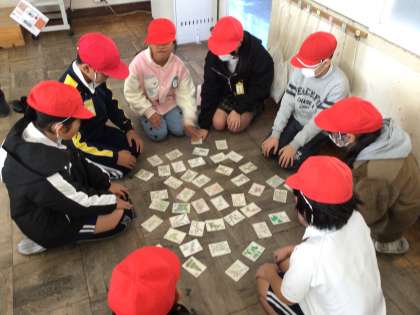 今日の給食後はやまびこ遊び(かるた練習)です。各やまびこ班の活動場所に分かれて、やまびこかるたの練習を行いました。