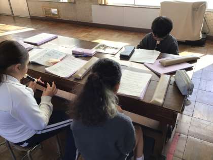 12/19 3年音楽 公開日 2025/12/19 更新日 2025/12/19 各学年から 3年音楽では、「とどけよう このゆめを」と「歌おう 声高く」を明るい声で歌いました。鑑賞では、「トランペットふきの休日」と「喜びの歌」を聴き、金管楽器の種類とそれぞれの楽器の音色について学びました。「メリーさんのひつじ」もリコーダーで合奏しました。