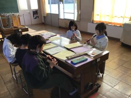 12/22 3年音楽 公開日 2025/12/22 更新日 2025/12/22 各学年から 3年音楽では、前半教室でテストを行いました。後半は音楽室に移動して、歌やリコーダーの練習を行いました。「メリーさんのひつじ」も合奏できるようになりました。