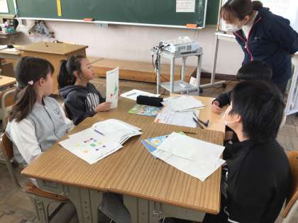ALTの先生と英語の学習をしました。自分が作ったクリスマスカードの紹介をしました。どんな色をいくつ使ったかを英語で紹介し合いました。
