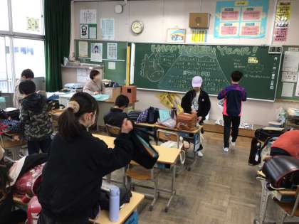 久しぶりの教室に入ると、先生や友達と会話をしながら、朝の支度を進めていました。