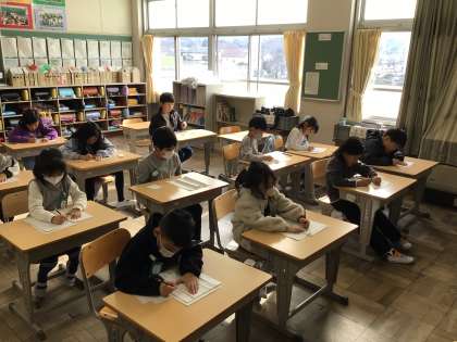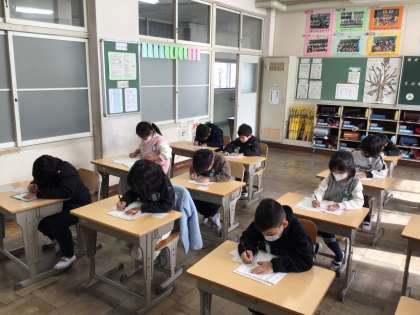 1/7 2年書き初め大会1 公開日 2026/01/07 更新日 2026/01/07 各学年から 2年生は、2回目の書き初め大会になります。1年生のときと同じで硬筆です。「弟」のようにバランスが難しい漢字も含まれていますが、お手本をよく見て書き上げていました。