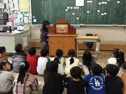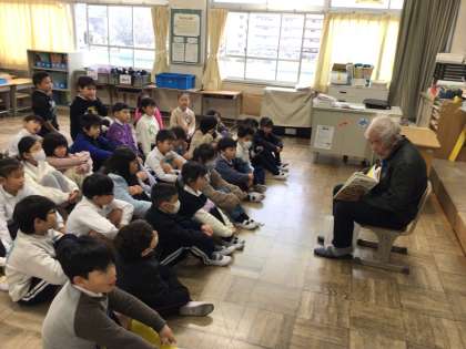 今日の読み語りの様子です。読み手の声に夢中になって、聴き入っていました。