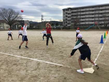 1/13 4年生体育 公開日 2026/01/13 更新日 2026/01/13 各学年から ハンドベースボールをしました。相手チームが手でうったボールをできるだけ早く取れるようにチームの中で声をかけ合っていました。ボールを手でうつことに慣れていない友達に「こうするといいよ」とアドバイスをしている姿も見られました。
